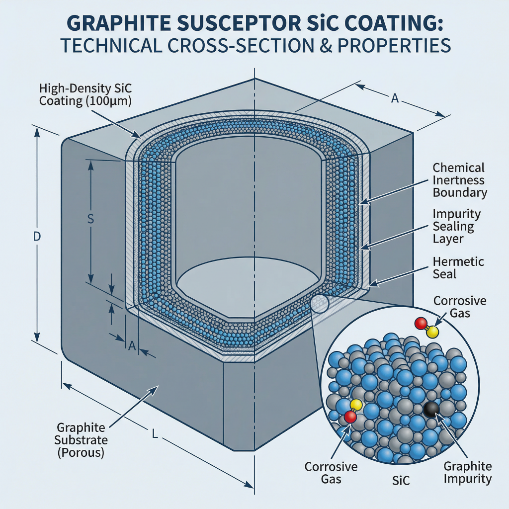 Ing MOCVD utawa proses epitaxial, susceptor grafit biasane mbutuhake lapisan kinerja dhuwur. Contone, Kapadhetan lapisan Silicon Carbide (SiC) langsung nemtokake kemampuan kanggo nutup impurities ing substrate.