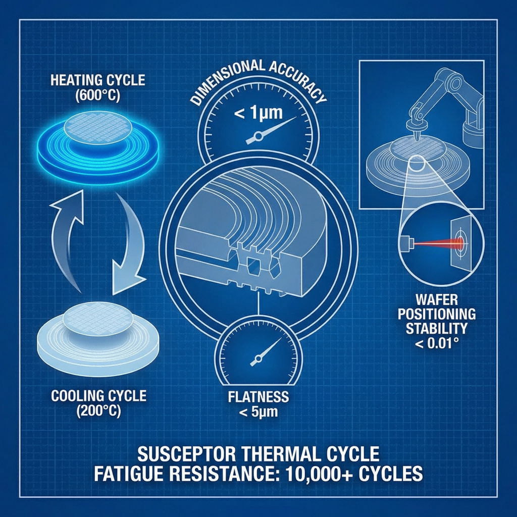 Nalika manufaktur semikonduktor terus berkembang menyang simpul proses sing luwih maju, integrasi sing luwih dhuwur, lan arsitektur sing kompleks, faktor penentu kanggo ngasilake wafer ngalami owah-owahan subtle. Kanggo manufaktur wafer semikonduktor khusus, titik terobosan kanggo ngasilake ora mung ana ing proses inti kaya litografi utawa etsa; susceptor kemurnian dhuwur saya tambah dadi variabel dhasar sing mengaruhi stabilitas lan konsistensi proses.